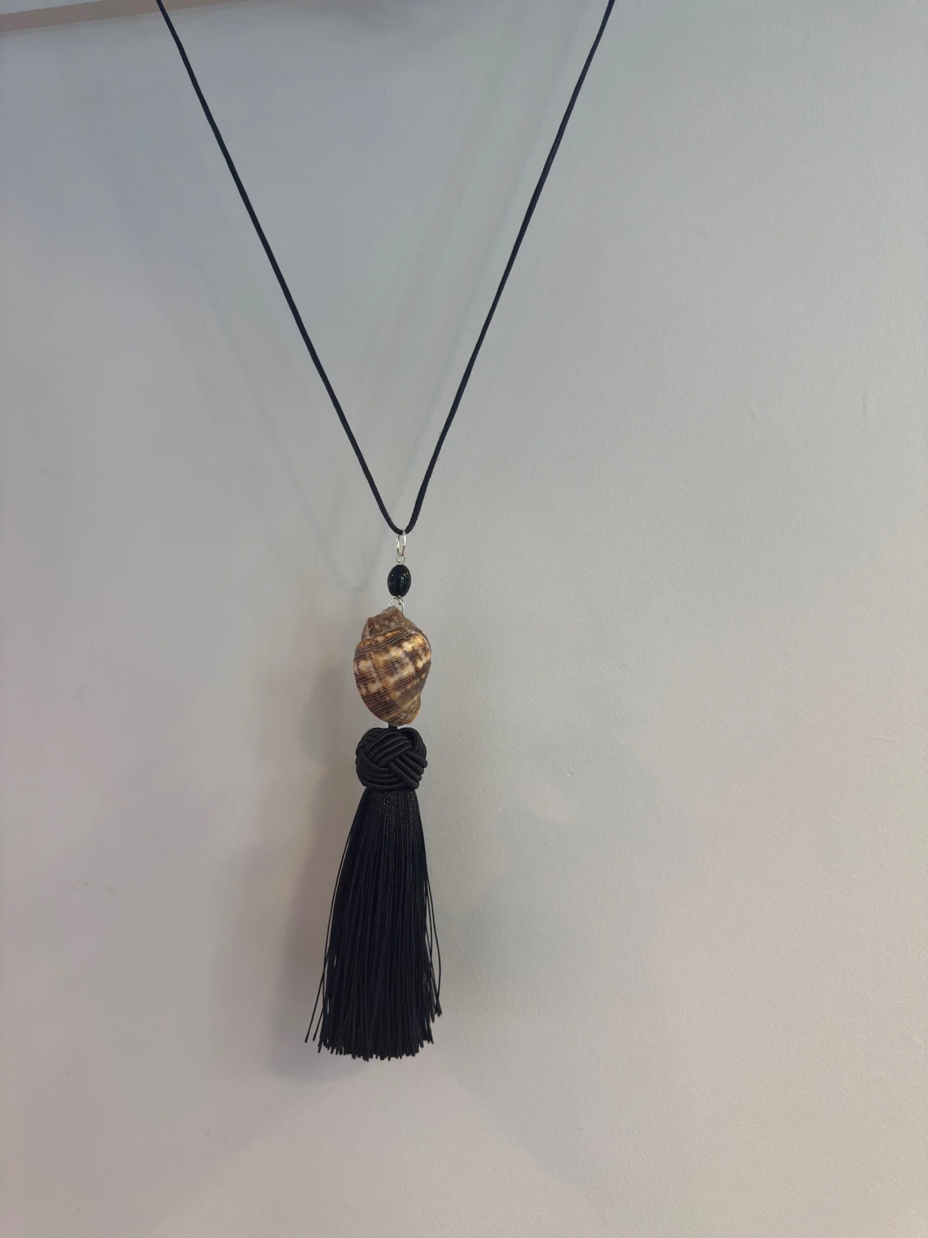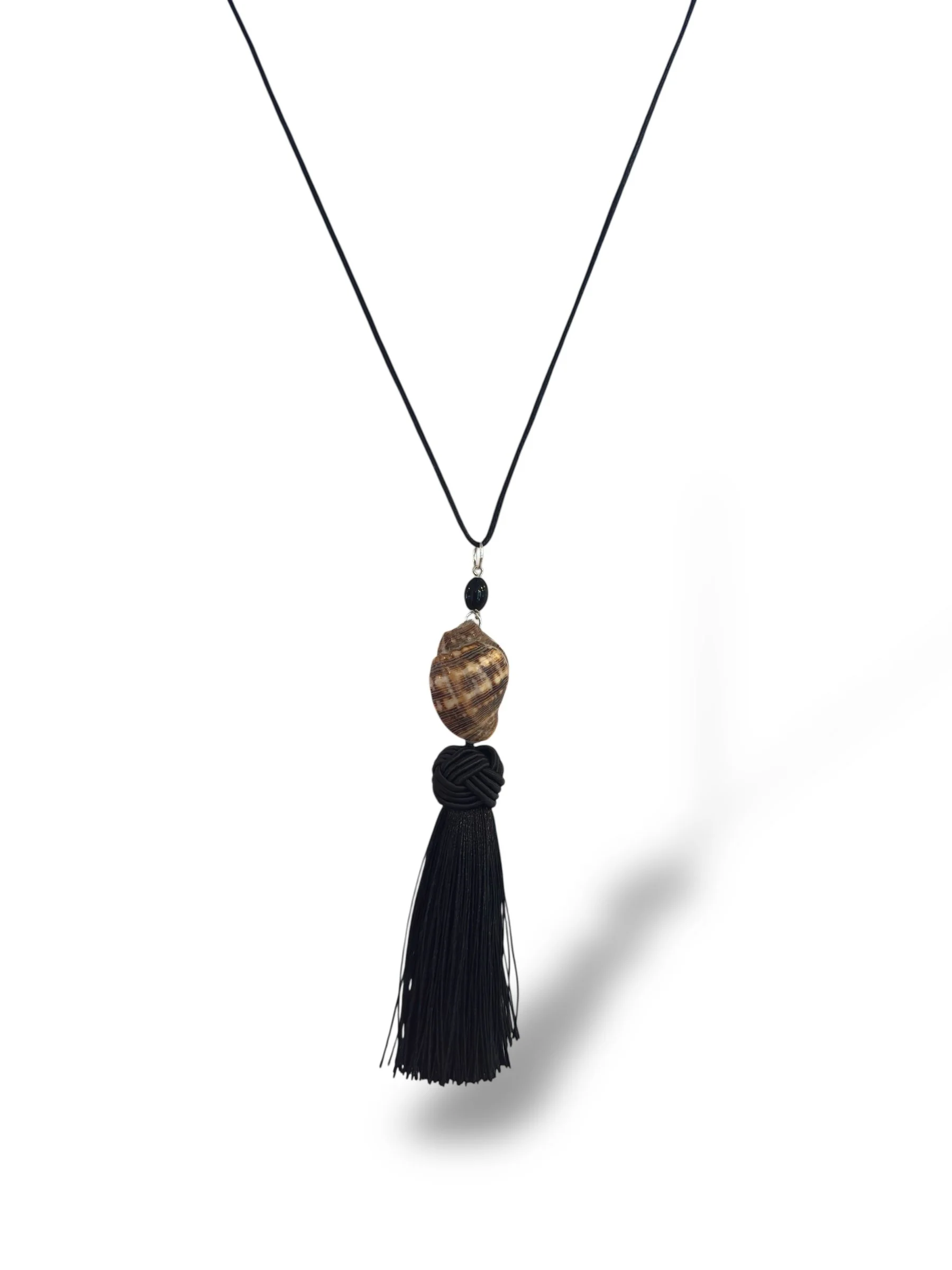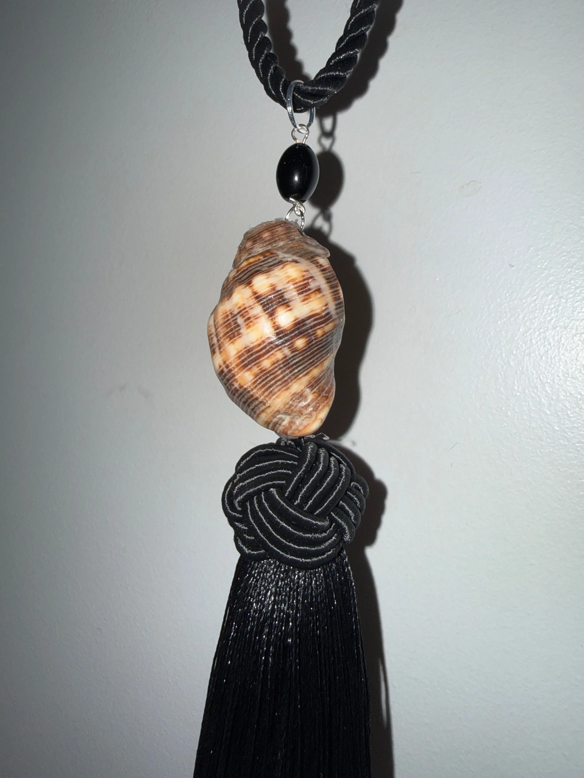 Made with semi-precious black jasper (8mm - 12mm) beads and Real cowrie shell, hand sourced from Mexico