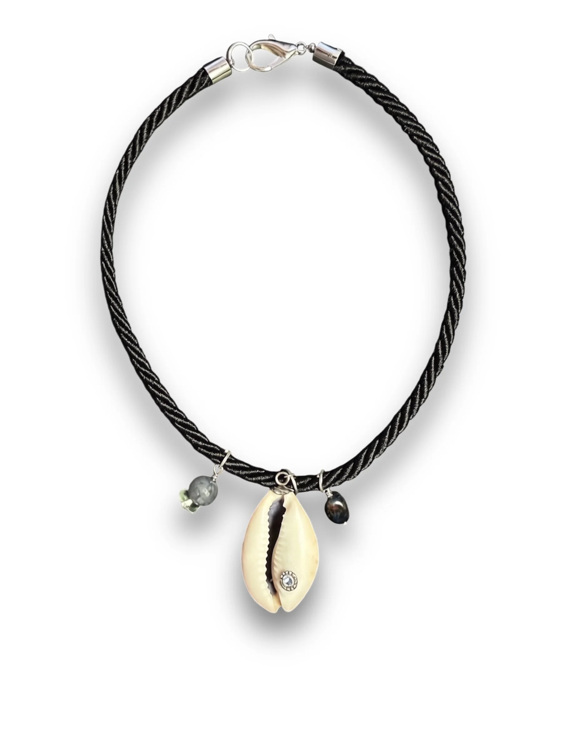 bracelet with multi colored mini Caribbean Cone Shells, hand-strung with real Japanese seed pearl beads