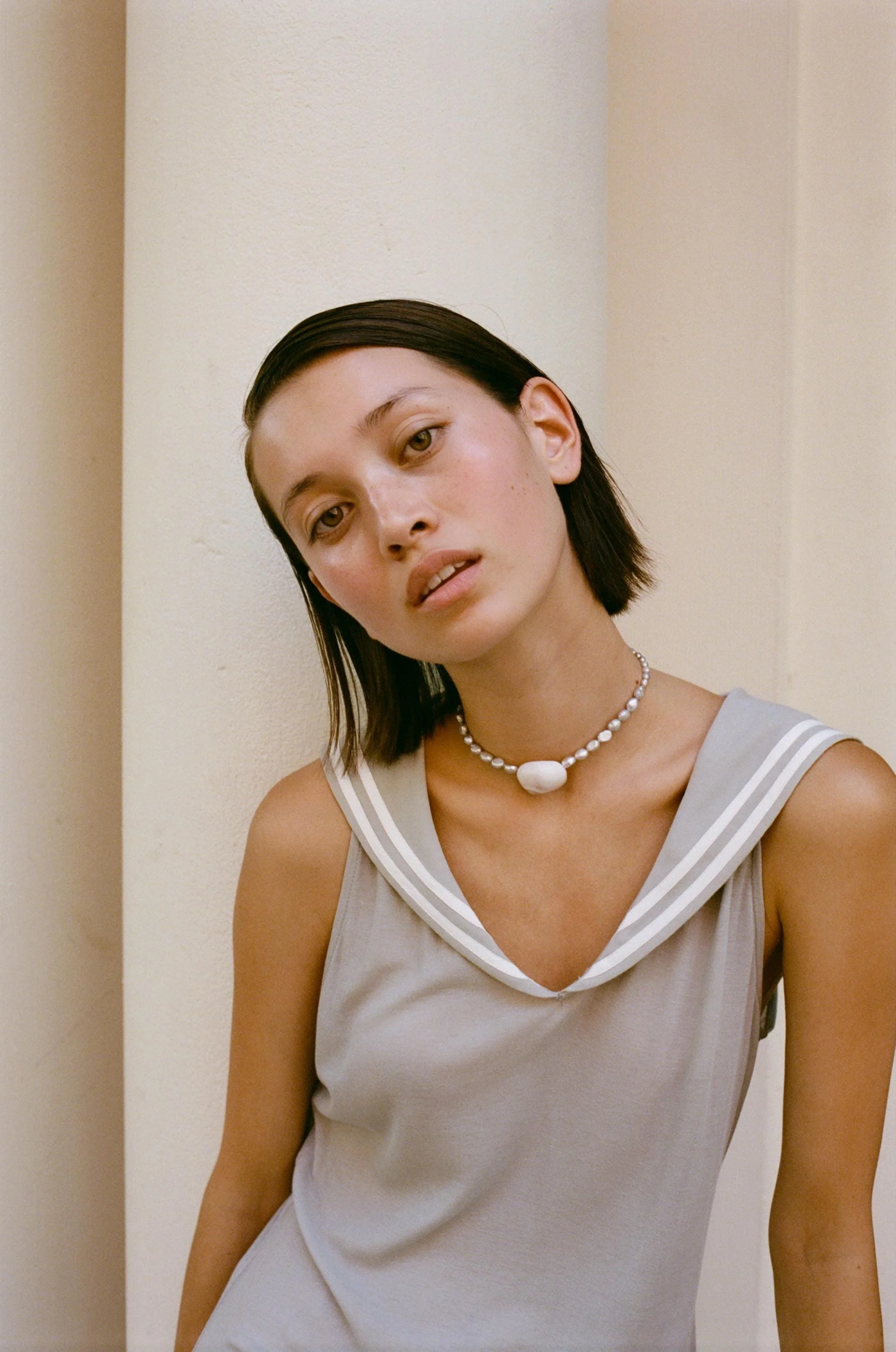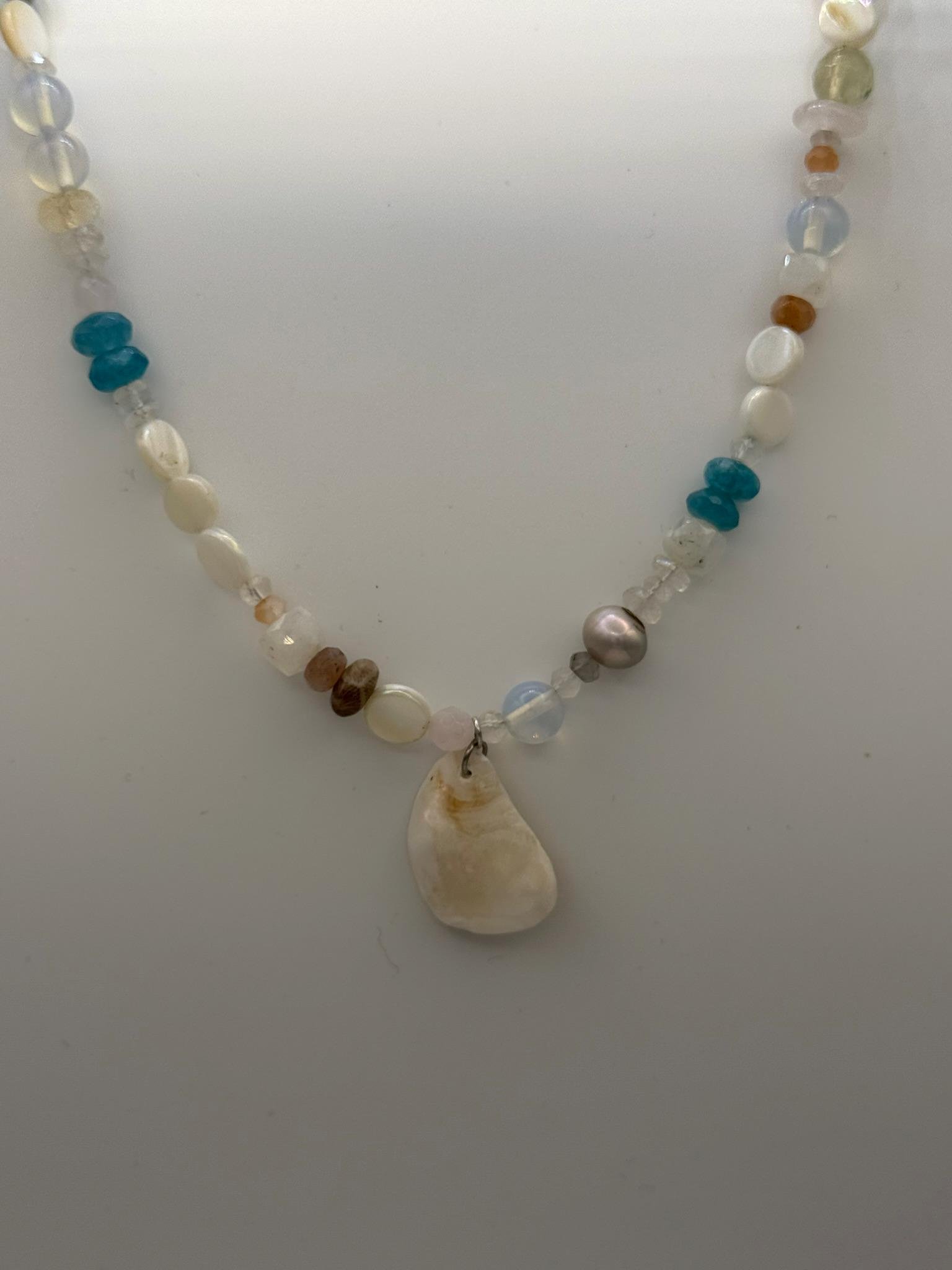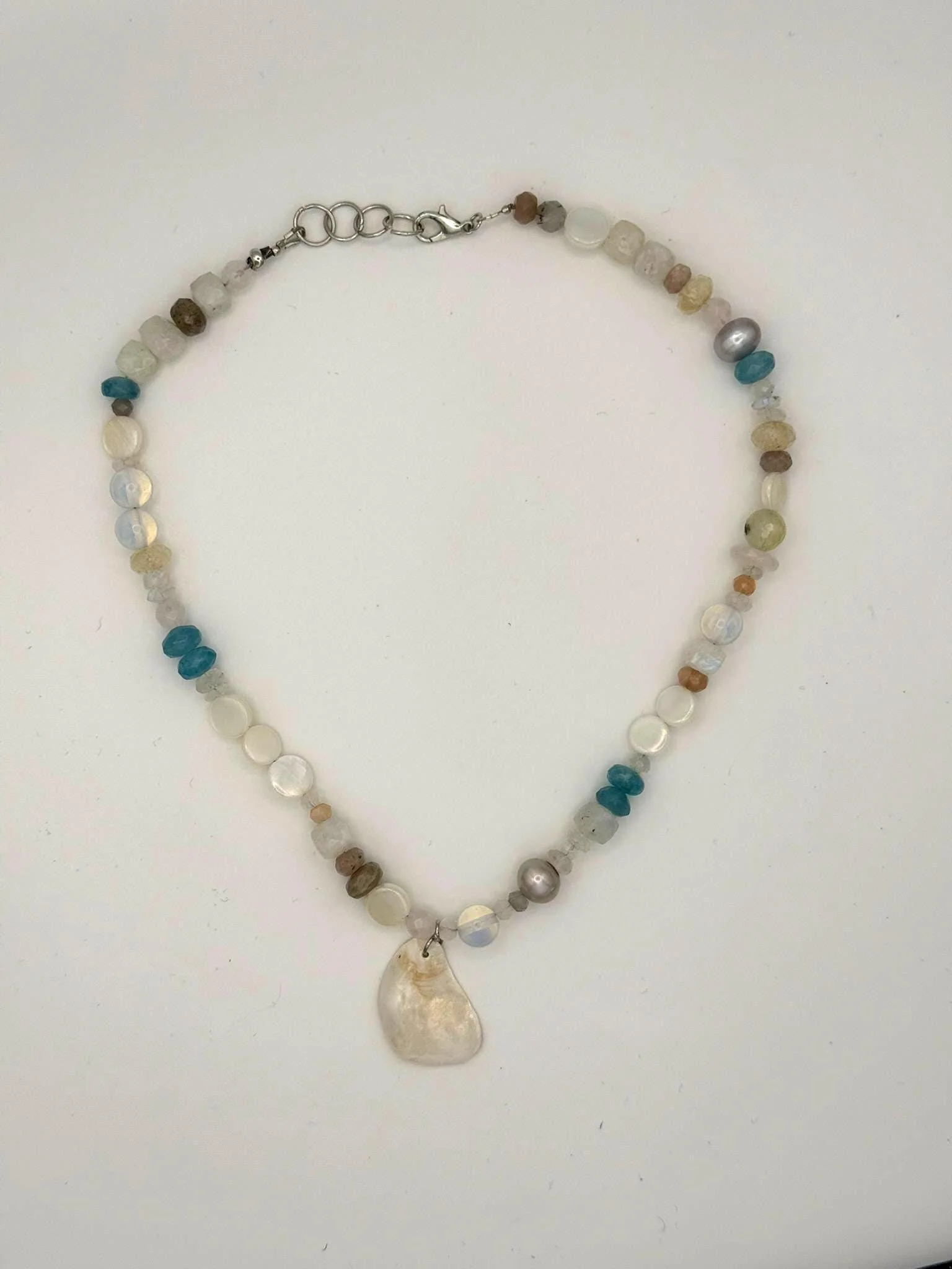 Silver Freshwater Pearl & MoonShell Choker Necklace